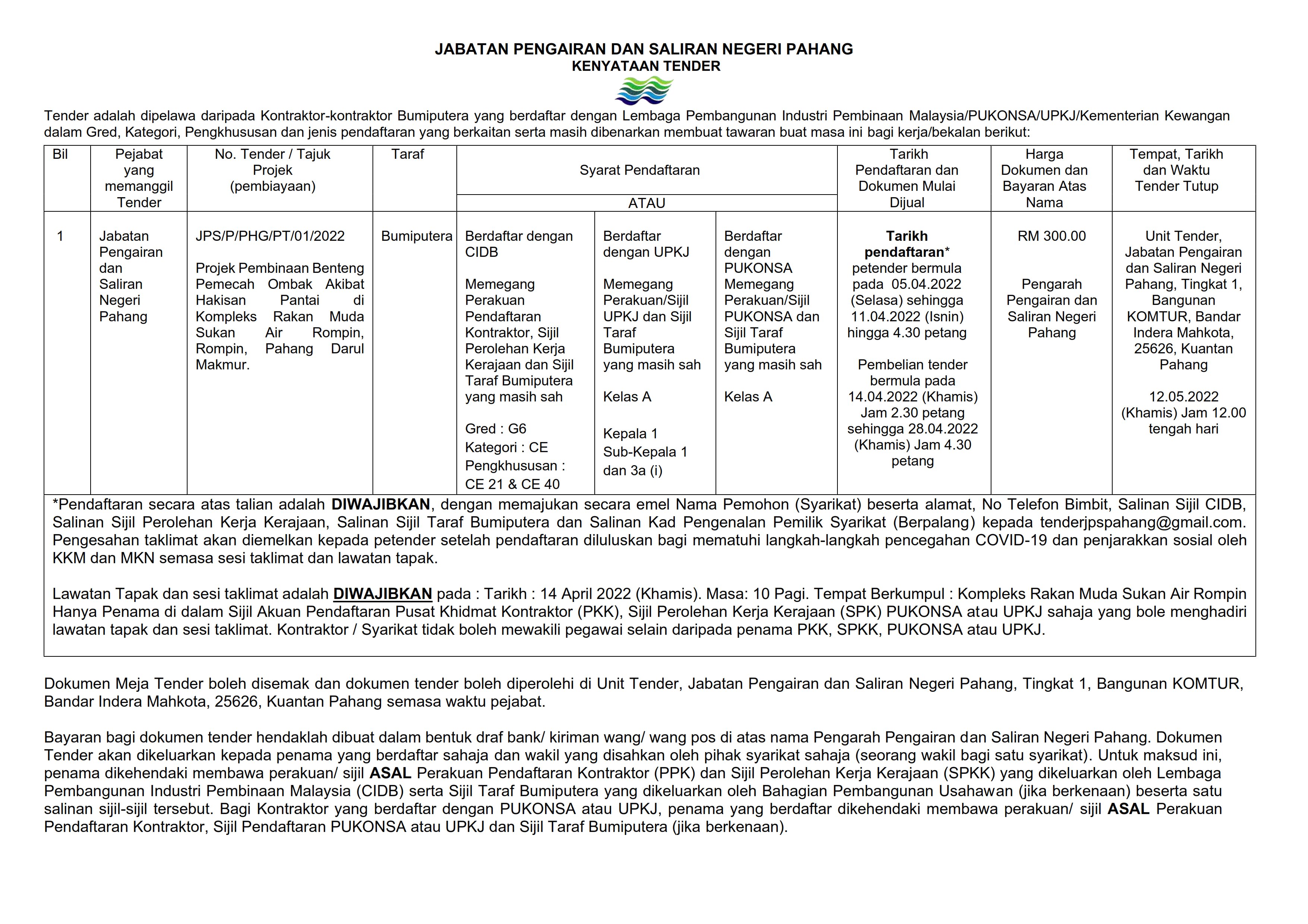 Web notis tender tender notice jabatan pengairan dan saliran malaysia jps butiran details. Tarikh tutup closing date. Web TARIKH TUTUP TENDER.